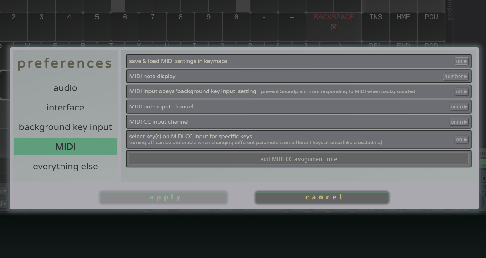 - MIDI input obeys ‘background key input’ setting